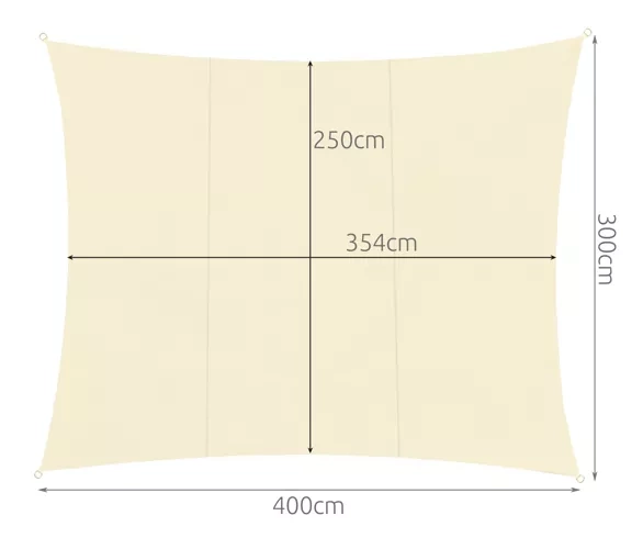 Voile d’ombrage rectangulaire 4 × 3 m en élégant coloris beige, offrant un ombrage fiable et une protection UV. Grâce à son tissu déperlant de 180 g/m², il sèche rapidement, résiste à l’humidité et à la moisissure tout en permettant une circulation de l’air. Idéal pour le jardin, la terrasse, le balcon et le camping – avec anneaux en D inoxydables et cordelettes pour un montage facile.