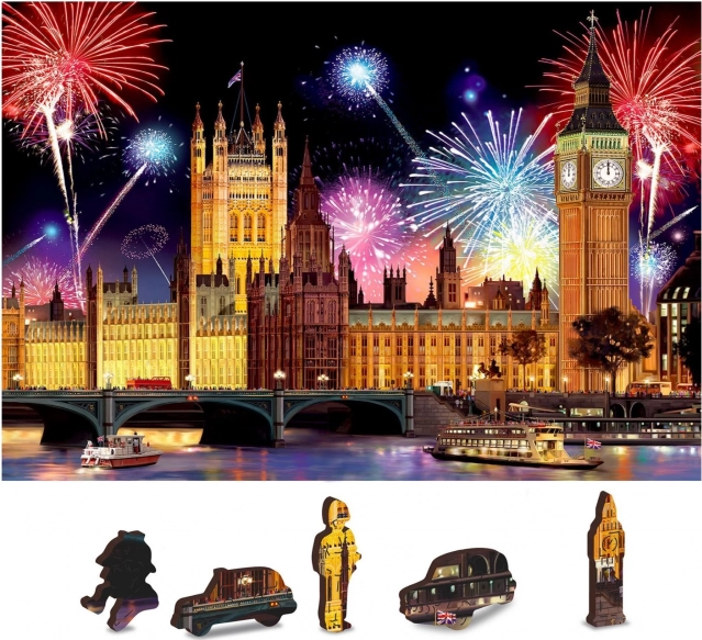 Apportez un morceau de Londres chez vous avec le fascinant puzzle en bois Londres de nuit 2v1. Ce casse-tête comprend au total 150 pièces, dont 30 sont de formes uniques, illustrant les bâtiments et symboles emblématiques de la capitale du Royaume-Uni. Préparez-vous à une plus grande difficulté grâce aux pièces de formes variées, représentant un défi même pour les assembleurs expérimentés.