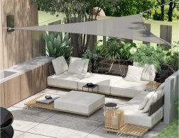 Créez une zone ombragée agréable pour la détente et les moments conviviaux. La forme triangulaire dans un gris moderne s’intègre à la plupart des extérieurs et, grâce au traitement déperlant et à la protection contre les UV, assure le confort même par temps chaud. Les coutures renforcées, les anneaux en D robustes et les coins résistants offrent longévité et stabilité avec une tension correcte.