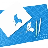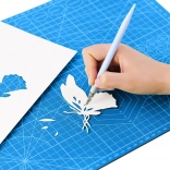 Tapis de coupe A3 auto-régénérant pratique pour des travaux créatifs précis et le modélisme. Grâce à sa construction multicouche, les entailles se referment partiellement, la surface reste lisse et le tapis est durable. Impression recto-verso avec grille en centimètres, angles et repères pour faciliter les coupes précises et protéger le plan de travail.