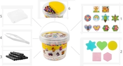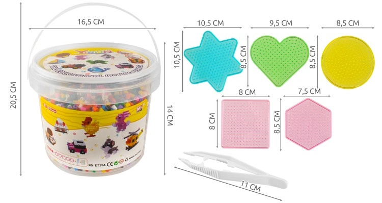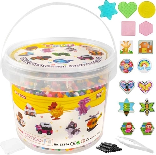 Ce riche ensemble de perles à repasser est idéal pour les activités à la maison comme en maternelle. L’emballage contient 5000 perles en dix couleurs de base, des gabarits pratiques et des accessoires grâce auxquels les enfants créent facilement des images colorées, des personnages et des animaux. En ajoutant plusieurs couches, il est possible de réaliser des modèles 3D. L’emballage léger et compact dans un seau refermable permet un transport et un rangement faciles.