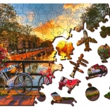 WOODEN CITY puzzle en bois avec motif d'Amsterdam offre un défi de montage unique et amusant avec 75 pièces. Les pièces spécialement formées apportent plus de divertissement et l'emballage écologique ravira tous les passionnés de puzzles.