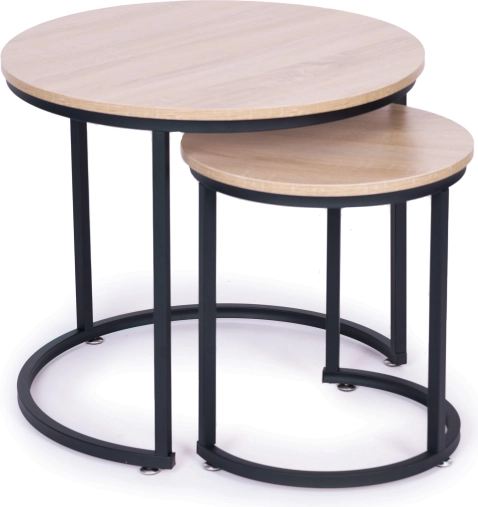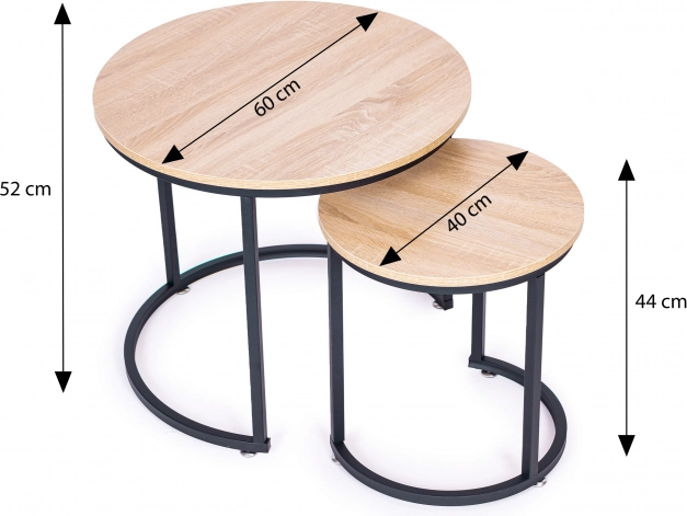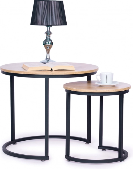 Un ensemble élégant de deux tables basses rondes au design loft complétera parfaitement le salon, le bureau à domicile ou le coin lecture. Grâce à la solution d’emboîtement astucieuse, elles économisent de la place et offrent une utilisation polyvalente. Structure métallique thermolaquée robuste et plateaux laminés à décor bois garantissent stabilité, résistance aux rayures et entretien facile.