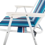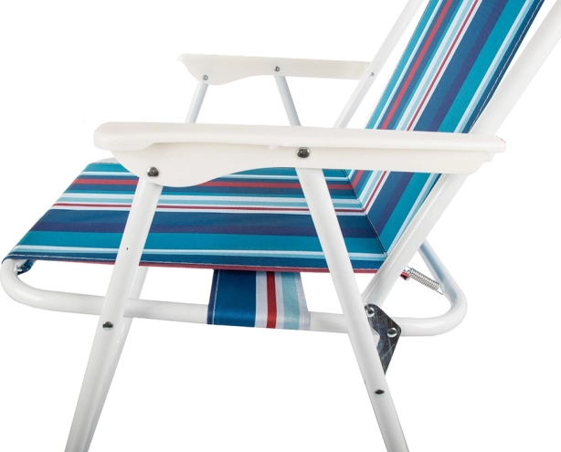 Cette chaise de plage pliante allie légèreté, facilité de transport et confort éprouvé. Son cadre en acier avec revêtement époxy assure la stabilité, tandis que le tissu résistant de l’assise et du dossier est agréable au toucher et facile à nettoyer. Les accoudoirs confortables favorisent la détente même lors d’assises prolongées.
