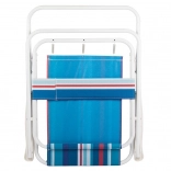 La chaise se plie complètement à plat et, grâce à son faible poids, vous l’emportez facilement à l’eau, au camping ou au jardin. Le dépliage ne nécessite aucun outil.