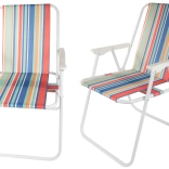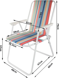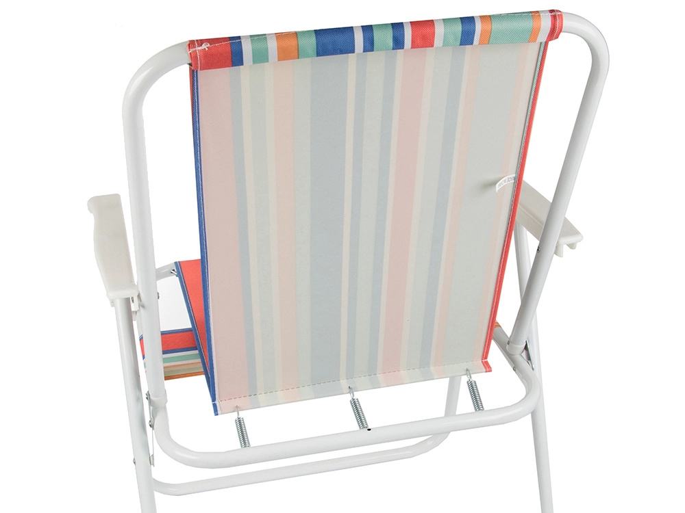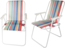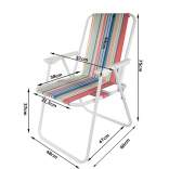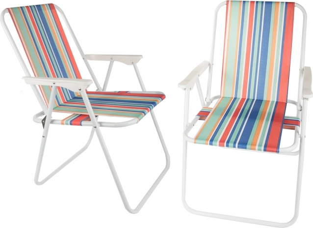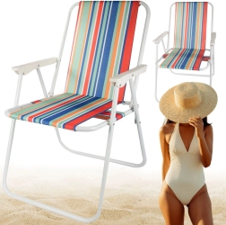 La chaise se déplie sans outils — il suffit de l’ouvrir et l’assise confortable avec accoudoirs est prête. Son motif rayé polyvalent apporte une ambiance estivale à vos sorties camping, sessions de pêche, pique-niques et moments de repos sur le balcon.