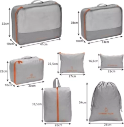 Notre ensemble d'organisateurs de voyage permet une efficacité maximale lors de l'emballage. Utilisez sept sacs de tailles et de conceptions différentes pour organiser sous-vêtements, chaussures, cosmétiques ou électronique.