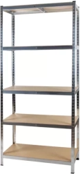 Chacune des 5 étagères en MDF supporte jusqu’à 175 kg. Une traverse centrale augmente la rigidité et répartit la charge de manière uniforme – idéal pour les outils lourds et les cartons.