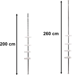 La structure télescopique s’adapte aux différentes hauteurs de salles de bain et de cabines de douche. Tige métallique stable avec éléments en plastique pour une longue durée de vie.