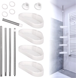 La tige en métal et plastique résistant permet un réglage continu de la hauteur et la disposition des étagères exactement selon vos besoins – des shampoings et gels jusqu’aux rasoirs et éponges. Le look minimaliste s’intègre discrètement aux salles de bain modernes comme classiques.