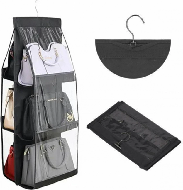 Pratique organiseur suspendu pour sacs à main vous permet de ranger de manière claire jusqu’à 6 sacs à main dans une armoire. Idéal pour gagner de la place et garder l’ordre.