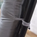 Partie plissée spéciale sur le dossier et cordons de fixation garantissant que le coussin reste fermement en place.