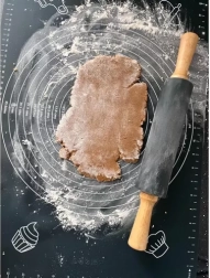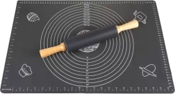 Le set RUHHY associe un tapis en silicone de qualité avec des échelles circulaires et linéaires précises et un rouleau dont la surface est en silicone avec poignées en bois. Le tapis adhère fermement au plan de travail, ne glisse pas et, grâce à sa surface antiadhésive, la pâte ne colle pas – sans saupoudrer inutilement de farine. Son grand format 70 × 50 cm offre suffisamment d’espace pour pizza, biscuits, pains d’épices et pâtes levées.