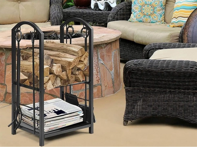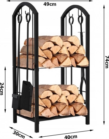 Le support comprend deux niveaux pour maximiser l'utilisation de l'espace, où vous pouvez placer du bois ou d'autres accessoires de cheminée.