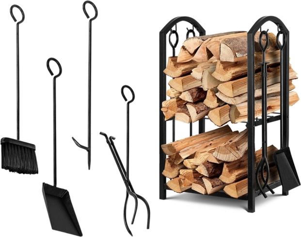 L'ensemble comprend tous les accessoires nécessaires pour la cheminée, y compris une pelle, un tisonnier, des pinces et un balai avec des manches longs pour une manipulation facile. De plus, l'ensemble est facile à assembler et inclut toutes les pièces nécessaires pour le montage.
