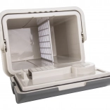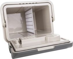 Le réfrigérateur est livré avec une poignée pratique et un couvercle à charnières, facilitant l’accès aux articles stockés. La technologie d’isolation en PU et l’épaisseur des parois de 21 mm assurent une conservation longue durée de la température des aliments.