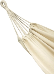 Construction robuste: Grâce à l'utilisation de coton et de polyester de haute qualité, le hamac est extrêmement durable et supporte une charge allant jusqu'à 120 kg. Une fois plié, il prend peu de place et se range facilement à l'aide de l'étui fourni.