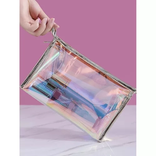Comprend une trousse transparente holographique à fermeture éclair – idéale pour les cosmétiques et les liquides lors des contrôles à l’aéroport.