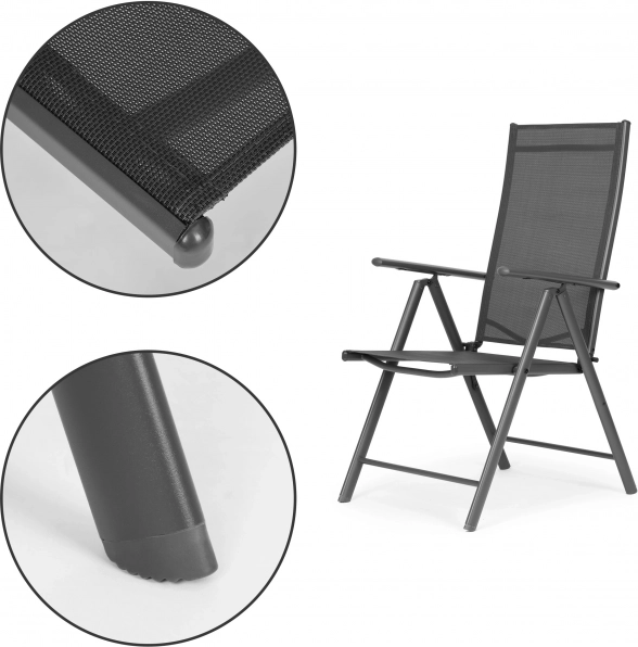 Profitez d’un moment de détente en extérieur quand vous le souhaitez. Ces chaises pliantes avec 7 niveaux de réglage du dossier vous permettent de choisir la position idéale – de l’assise droite à table jusqu’à la détente avec un livre. Le cadre en acier peint par poudrage assure stabilité et longévité, tandis que le textilène s’adapte au corps et offre une excellente ventilation.