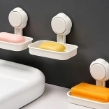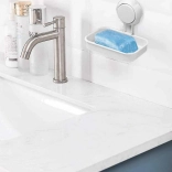 Le porte-savon est fixé au mur à l'aide d'une ventouse puissante. Il suffit de placer la ventouse sur le mur et d'appuyer fermement sur le bouton rond.