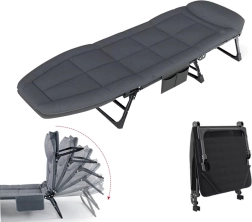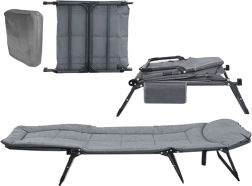 La chaise longue peut être facilement pliée en une taille compacte et rangée dans le coffre, facilitant ainsi son transport et son stockage.