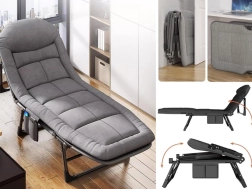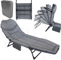 Le produit dispose d'un organiseur pratique avec deux poches pour placer votre téléphone, vos télécommandes ou votre montre. La chaise longue est conçue avec un dossier réglable à plusieurs niveaux pour un confort maximal.