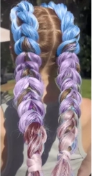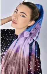 La combinaison du bleu, du violet et du rose avec de fines mèches brillantes illumine instantanément toute coiffure et lui confère un caractère unique.