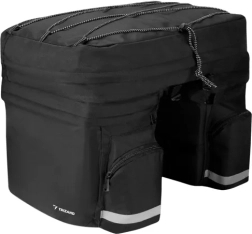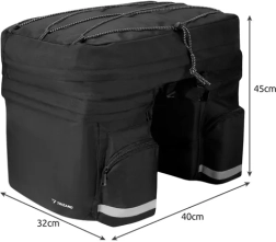 La sacoche est conçue pour être fixée à l’aide de bandes auto-agrippantes, de boucles et de sangles, ce qui la rend compatible avec tous les types de vélos équipés d’un porte-bagages. Elle s’adapte facilement et rapidement à la taille du porte-bagages.