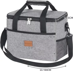 La glacière souple spacieuse de 40 L garde vos boissons et vos aliments frais longtemps – idéale pour la plage, les pique-niques et les courses. Grâce au tissu Oxford de qualité, elle est imperméable, et la feuille thermo-isolante intérieure avec un rembourrage en mousse EVA assure un refroidissement durable ainsi que le maintien de la chaleur. Le transport est confortable grâce aux poignées rembourrées avec patte velcro et à la bandoulière amovible et réglable. Le colis comprend également 2 accumulateurs de froid pour prolonger encore la conservation du froid.