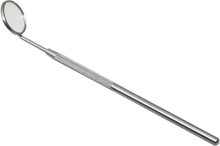 Miroir dentaire professionnel. Équipement indispensable pour tout dentiste. Fabriqué en acier inoxydable robuste. Long manche avec prise texturée pour une maniabilité aisée pendant le travail. Le miroir grossissant interchangeable offre une vue précise de l’état de la bouche et des dents.