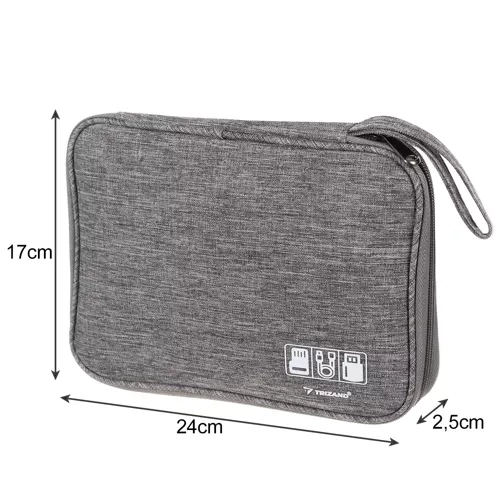 Fini les câbles emmêlés et le fond de sac chaotique. Cet organisateur pratique associe un polyester léger et résistant à une organisation astucieuse pour ranger en toute sécurité et clairement vos câbles USB, chargeurs, écouteurs et adaptateurs. Ses dimensions compactes 24 × 17 × 2,5 cm se glissent facilement dans un sac ou un bagage cabine.