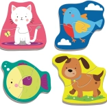 Découvrez les premiers puzzles pour tout-petits : 4 adorables puzzles en forme d’animaux domestiques. Chaque image se compose de 2 grandes pièces, permettant aux enfants de réussir rapidement et d’avoir envie de recommencer encore et encore. Les couleurs saturées et les illustrations amicales incitent naturellement au jeu.
