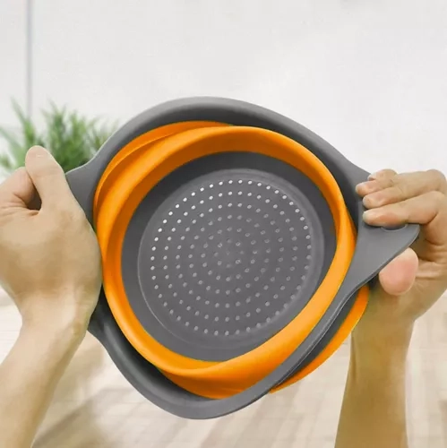 Passoire pliante compacte en silicone et plastique résistants, elle économise de la place dans la cuisine et gère l’égouttage quotidien des pâtes, légumes et fruits. Grâce à son système de pliage rapide, ses poignées confortables et sa possibilité d’accrochage, elle est pratique à la maison comme en déplacement. Le matériau résiste à des températures de -10 à 80 °C et se nettoie facilement.