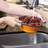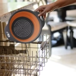 En un seul geste, pliez la passoire à plat pour une hauteur d’environ 2,5 cm. Idéale pour les petites cuisines, le camping-car ou les voyages.