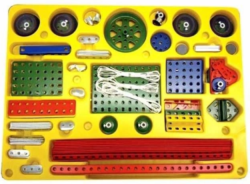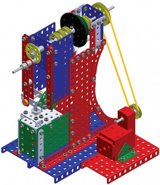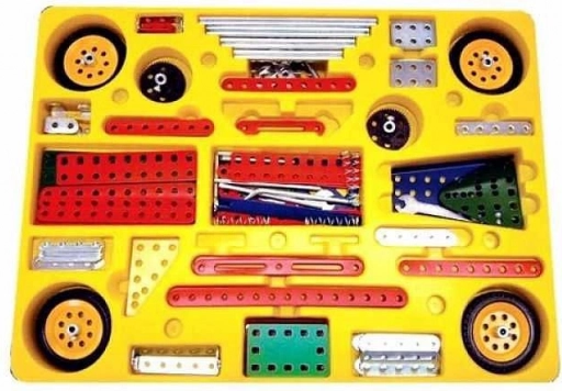 Le vaisseau amiral des sets MERKUR apporte un équipement complet pour des projets ambitieux. Cet ensemble en cinq niveaux contient tous les types de pièces des kits plus petits, complétés par un moteur et un large choix d’éléments de transmission. Grâce à la construction métallique robuste et aux trous précis, l’assemblage est stable, exact et extrêmement polyvalent.