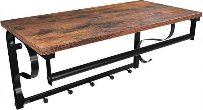 Cette étagère murale polyvalente avec porte-manteau maintient l’ordre tout en économisant de la place. La tablette supérieure stable est idéale pour plantes, livres, boîtes ou décorations, tandis que 5 crochets et une tringle supportent manteaux, vestes, sacs et clés en toute fiabilité. Le cadre en métal robuste et la planche durable de couleur brun rustique s’intègrent parfaitement aux intérieurs modernes comme industriels.