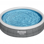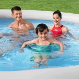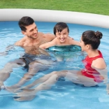 Pratique et hors‑sol, cette piscine pour toute la famille se prépare en quelques minutes. Gonflez l’anneau supérieur, raccordez un tuyau d’arrosage pour une vidange aisée et profitez d’une eau limpide grâce à la pompe de filtration fournie. Le matériau triple couche, résistant aux déchirures, assure une longue durée de vie.