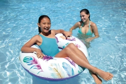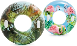 Son matériau résistant de 0,25 mm d’épaisseur supporte très bien un usage courant à la piscine comme en bord de mer. Grâce à ses motifs tropicaux avec feuilles de palmier ou flamants roses, la bouée attire le regard et apporte un style frais à votre équipement d’été.