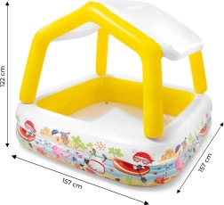 La piscine gonflable avec auvent INTEX est idéale pour rafraîchir les enfants au jardin pendant l’été. Sa forme carrée de 157 × 157 cm et sa hauteur de 122 cm offrent assez d’espace pour jouer, tandis que la capacité de 280 l à 20 cm de hauteur d’eau garantit des jeux sûrs et confortables. Le vinyle résistant (0,25 mm) et les parois gonflables souples améliorent à la fois le confort et la sécurité.
