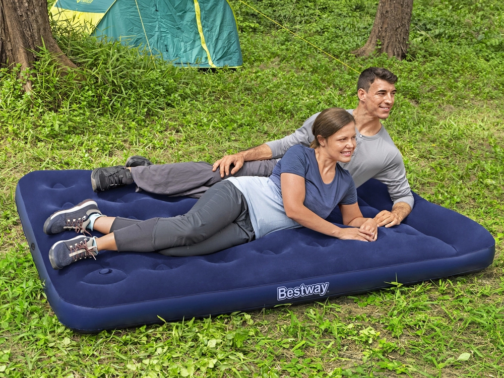 Vous cherchez une solution polyvalente pour des invités, le camping ou les week‑ends ? Le lit pneumatique BESTWAY Air Mattress Full offre confort, stabilité et facilité d’utilisation en un seul produit. Le matériau résistant avec surface floquée douce maintient le drap en place et assure un confort tout au long de la nuit. L’oreiller intégré soutient la tête et la nuque sans accessoire supplémentaire.