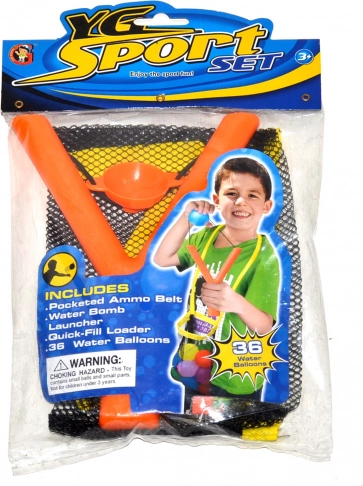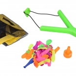 1× lance-pierre, 36× ballons d’eau, 1× sachet en maille