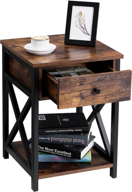 Cette table de chevet rustique avec tiroir est un choix idéal pour votre chambre ou votre salon. Elle est parfaite pour ranger des livres, des réveils, des cache-pots ou exposer de belles photos encadrées.