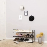 Les trois étagères en tubes horizontaux permettent d’aérer les chaussures et limitent la poussière. Grâce aux espacements étudiés, le meuble accueille jusqu’à 15 paires de chaussures, y compris modèles pour enfants, baskets et bottines. Montage facile en autonomie pour gagner du temps – c’est prêt en un rien de temps.