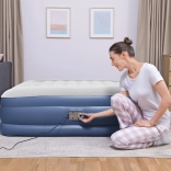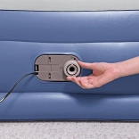 La pompe électrique intégrée 220–240 V gonfle le matelas en seulement 4 minutes. Le matin, vous apprécierez la valve à vis rapide pour un dégonflage facile. Le traitement de surface Ultra-Fresh limite la prolifération des bactéries. Une fois plié, le matelas se range aisément dans le sac en tissu fourni.