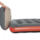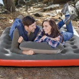 Ce matelas gonflable deux personnes combine un PVC robuste résistant aux dommages avec une surface veloutée (floquée) agréable pour un confort supérieur et une meilleure accroche du drap. L’oreiller intégré 2 en 1 et la structure stable coil‑beam offrent un soutien uniforme du corps toute la nuit.