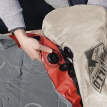 Branchez le sac de pompage AirCinch à la valve, capturez l’air puis comprimez pour gonfler le matelas. Environ 90 secondes et ~12 compressions suffisent pour atteindre la fermeté souhaitée.