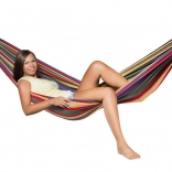 Un étui en tissu assorti est inclus. Le hamac prend très peu de place et s’emporte facilement.
