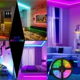 La bande est autocollante, ce qui permet une installation facile à différents endroits tels que plafonds, sols, escaliers ou murs. Vous pouvez également l’utiliser comme éclairage décoratif sur des objets comme un téléviseur, ou comme rétroéclairage dans une chambre d’enfant.