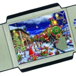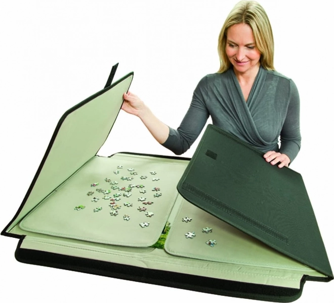L’emballage comprend deux plateaux séparés pour trier et déposer les pièces. Les bandes Velcro assurent une fixation ferme afin d’éviter tout déplacement pendant le transport. La chemise est conçue pour des puzzles jusqu’à env. 68 × 49 cm (500–1000 pièces).