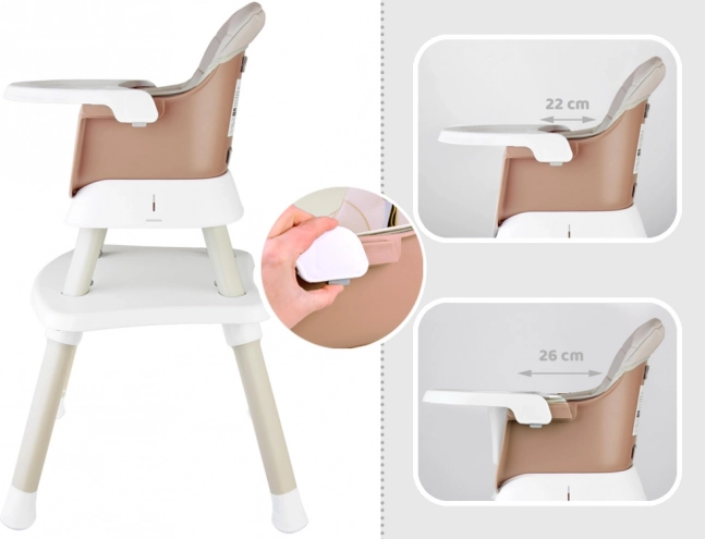 - 6 fonctions en une : chaise haute, réhausseur pour chaise de table, chaise basse avec plateau, chaise avec table, table avec plateau pour briques, tabouret bas